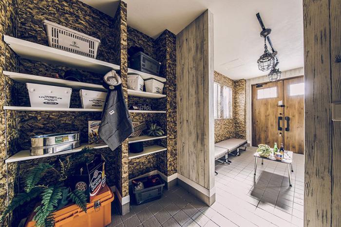 玄関の土間収納は、外で使う道具や趣味のアイテムをスマートに収納できる便利なスペースです。