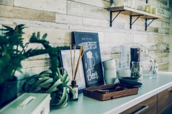 広いスペースには大きめのもの(アートや植物など、高さのあるもの)がいくつかあると見栄えします。