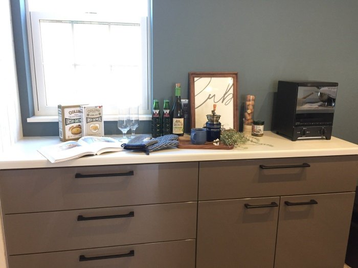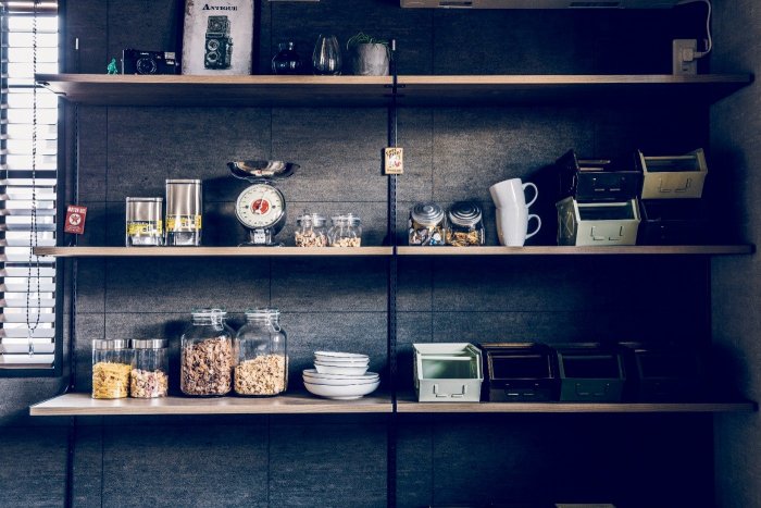 また、入れ物などは違う種類でばらばらっと置くよりも、同じ種類を複数固めて置くと、量があってもきれいに見えます。