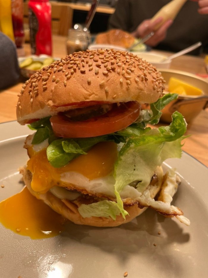 パティの他にベーコンや卵やトマトもはさんでBLTっぽくしたりと本格的なハンバーガーになりました!