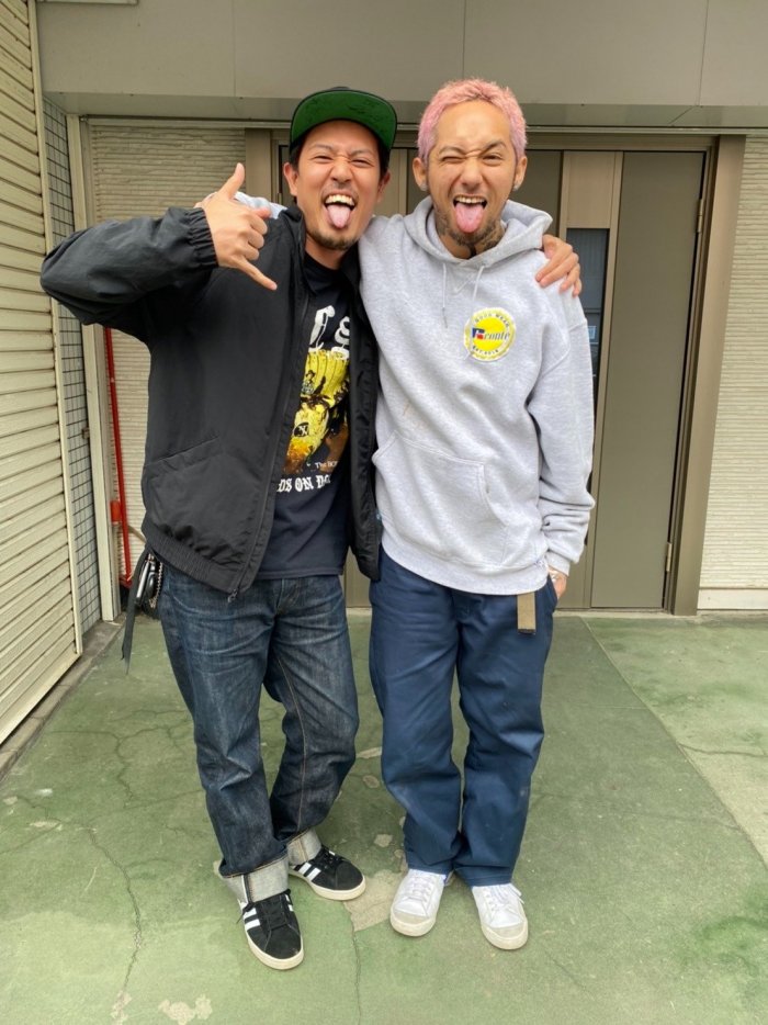 普通にライブハウス裏で座ってました。(笑)