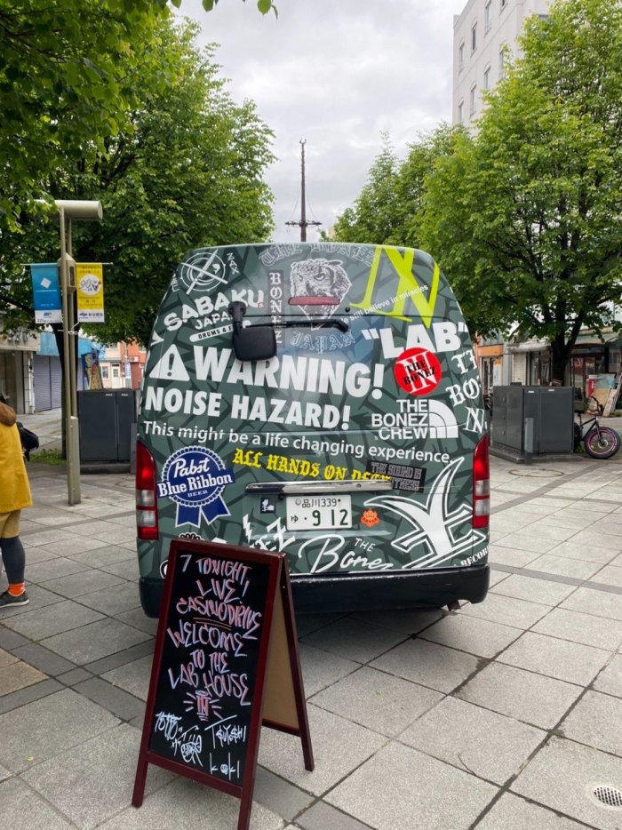 ライブハウス前にはこんなバンも停まっていて気持ちを最高に上げてくれる、ニクイ!!