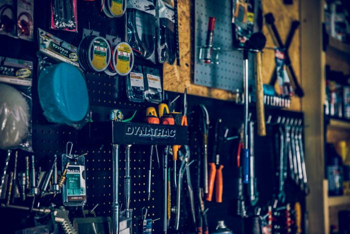 工具やパーツをディスプレイ収納するのはガレージらしさの一つですが、細かな部品やオイル類は密閉収納がベター。