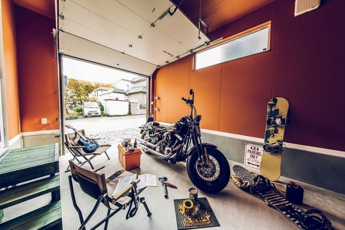 ガレージではバイクや車の整備をしたり、プロジェクターで壁にバイク動画を写して盛り上がったりなど、楽しい時間を過ごしています。