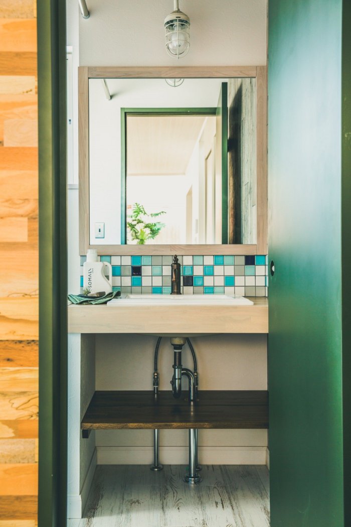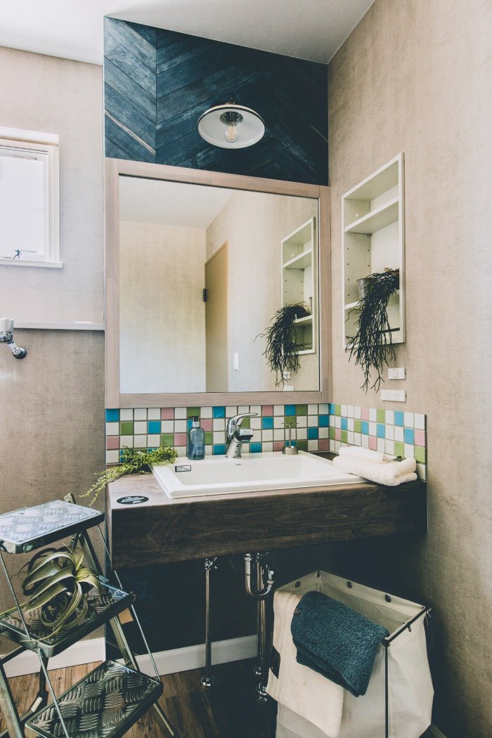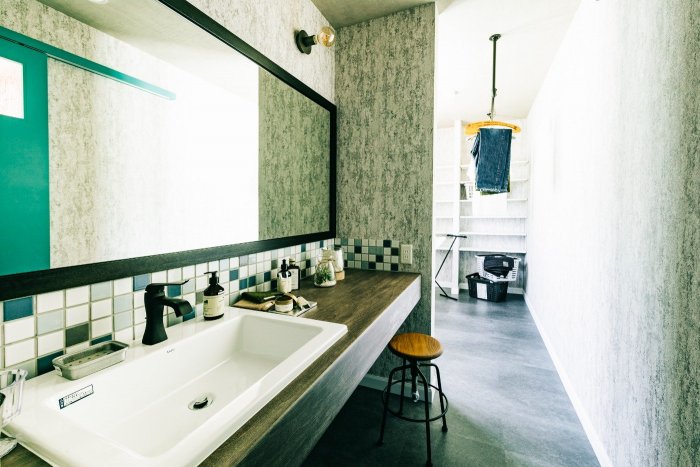 タイルを貼ることによって手や顔を洗っている時にお水が跳ねても、クロスに直接つくことなくタイルがキャッチしてくれる効果があります。