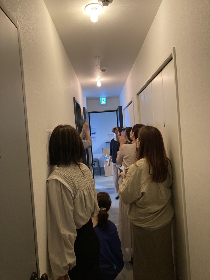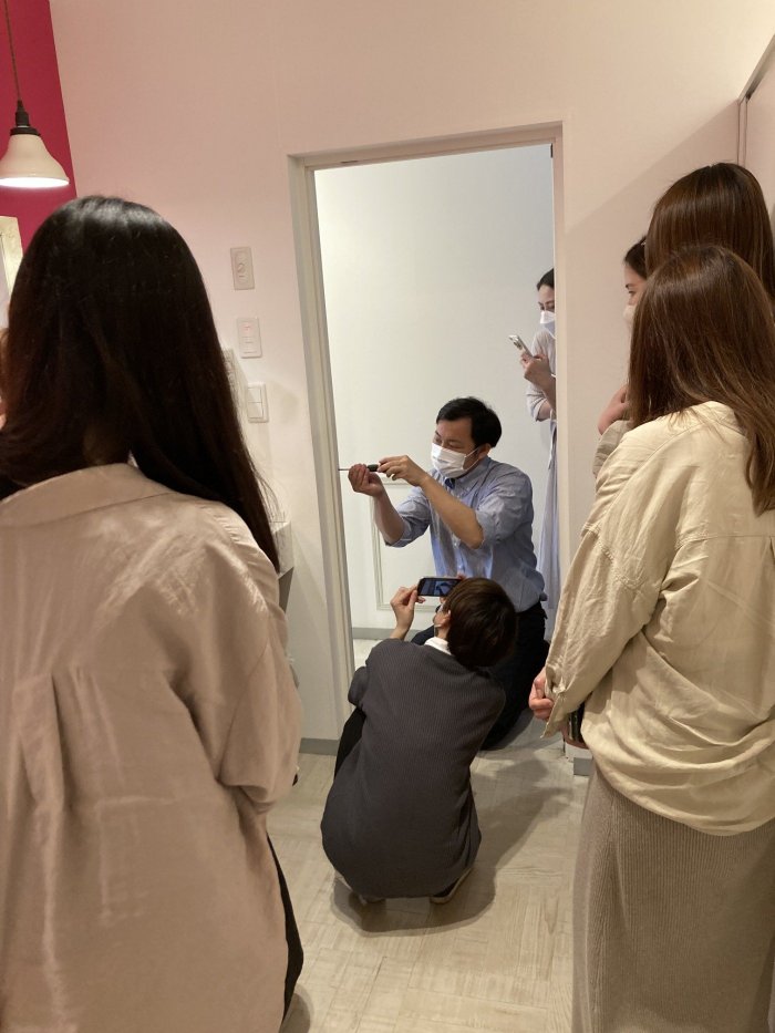 住んでから何年かすると扉を閉めるときに少し歪んできてしまって建付けが悪くなってきてしまうことがあるのでその際にどうやって調整するか本社の扉で実践してもらいました。
