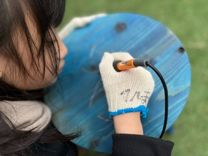 電気でペンが高温まで熱くして、熱で気を焦がしながら線を刻んでいく為の道具です!