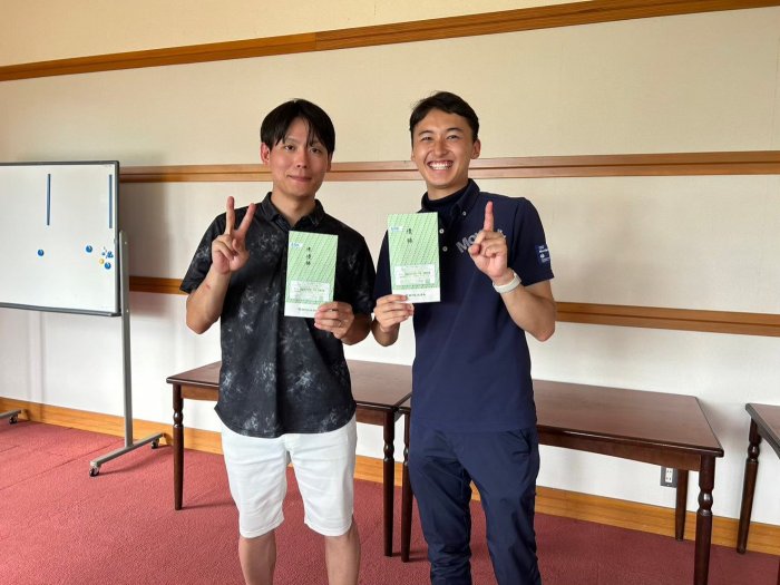 こちらはゴルフで優勝して嬉しい村中さんの素顔☆(右側)
