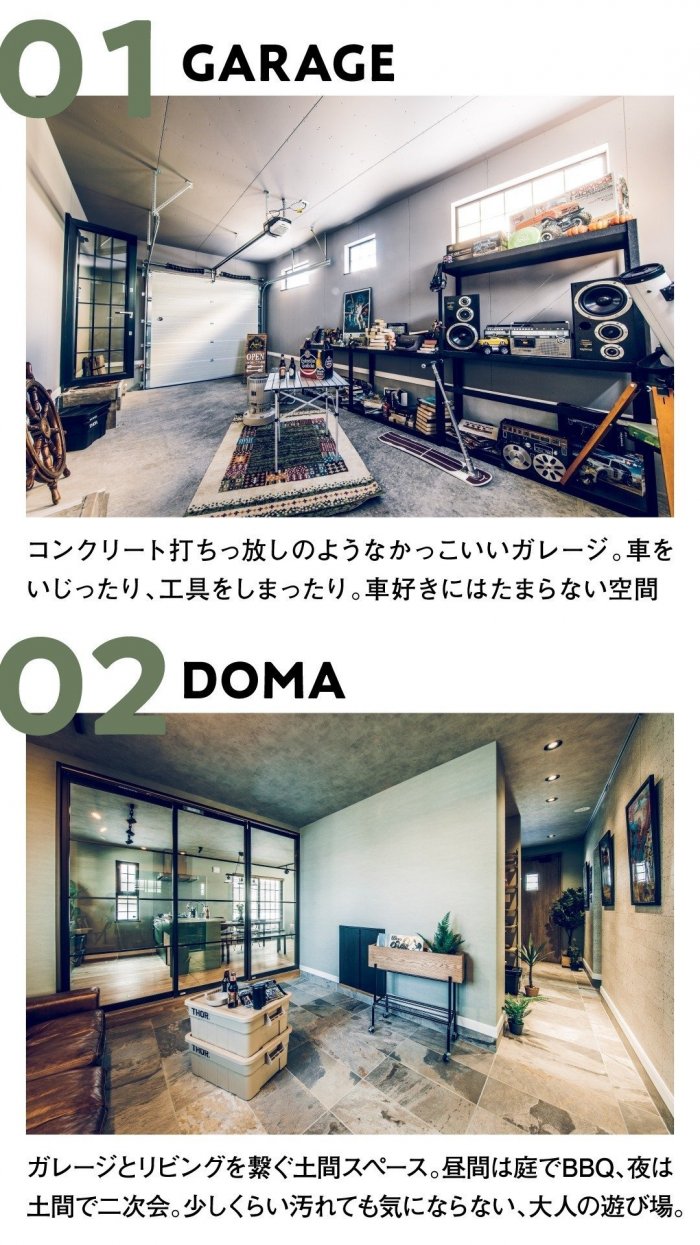 アメカジ工務店だけの標準装備やオリジナル仕様、注文住宅の間取りづくりを体感できるモデルハウスとなっております。