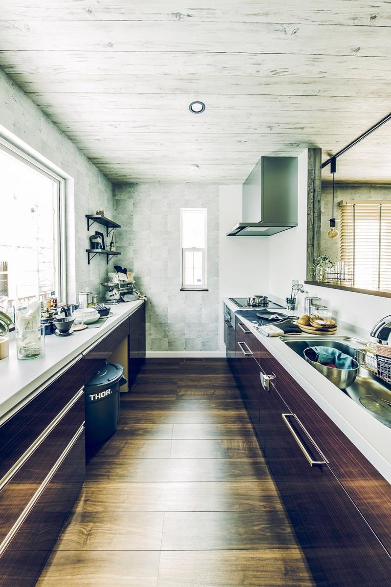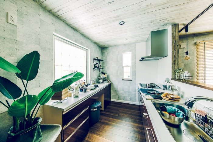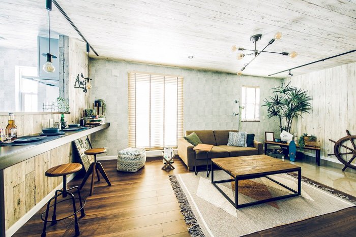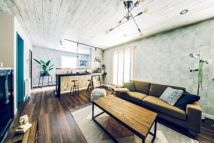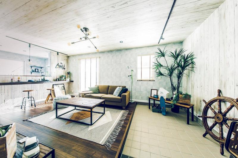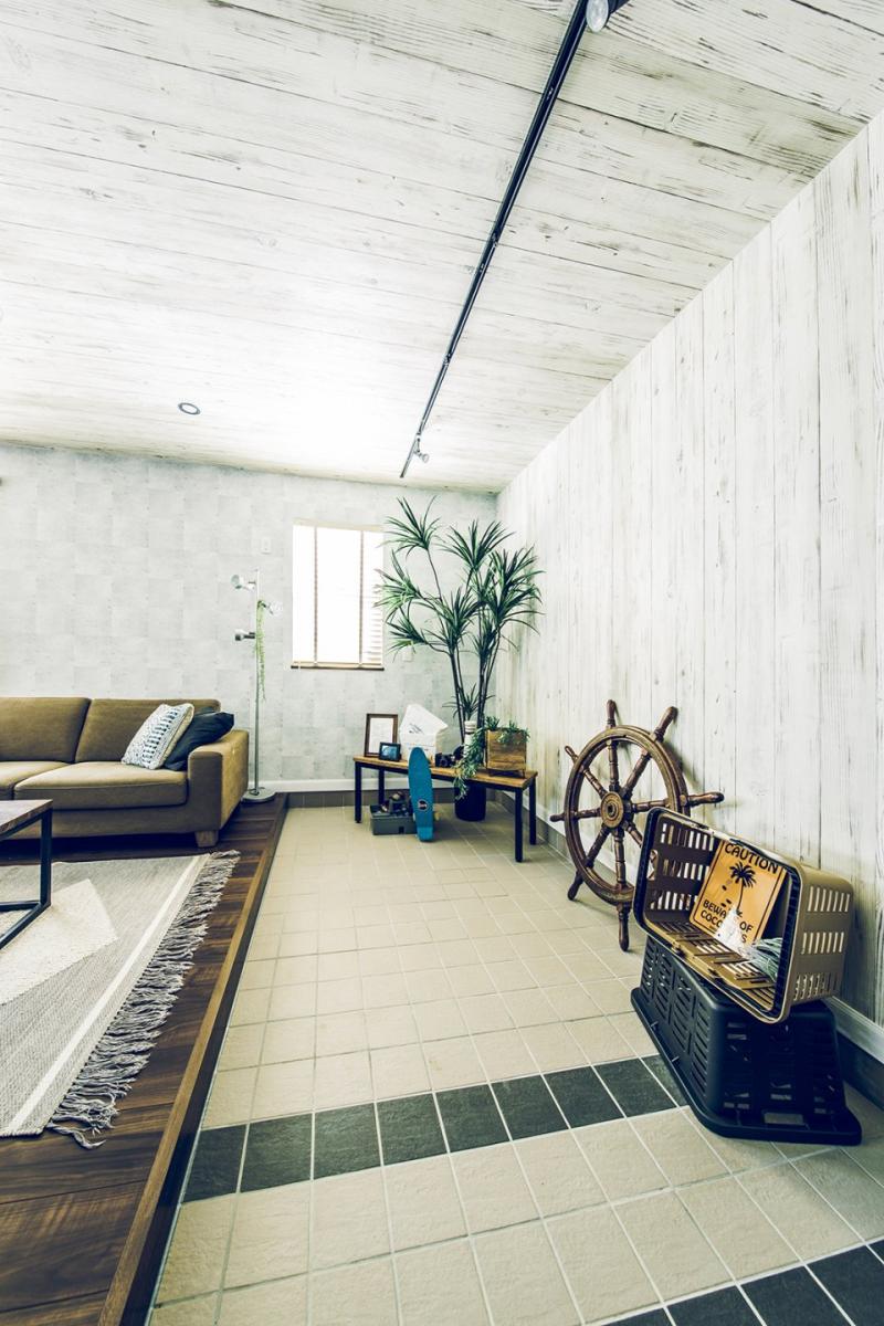 • 土間とひとつづきの開放的なリビングはヴィンテージ風のコーディネート。