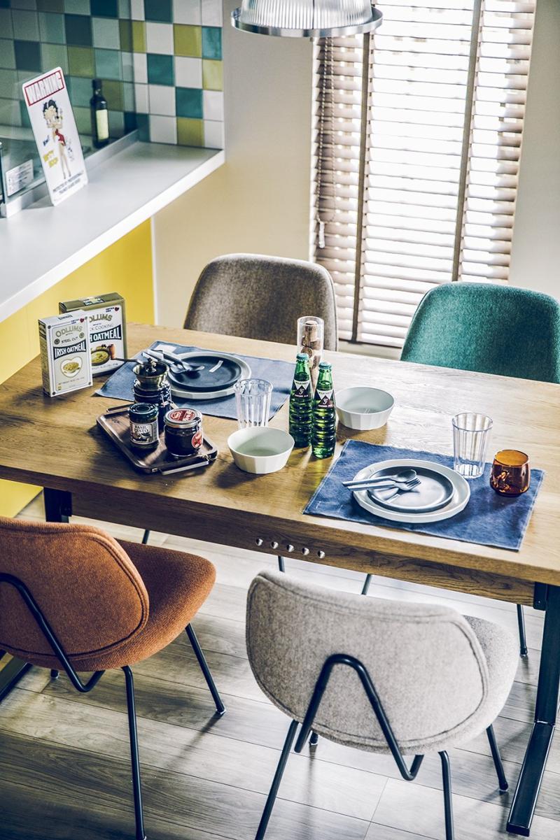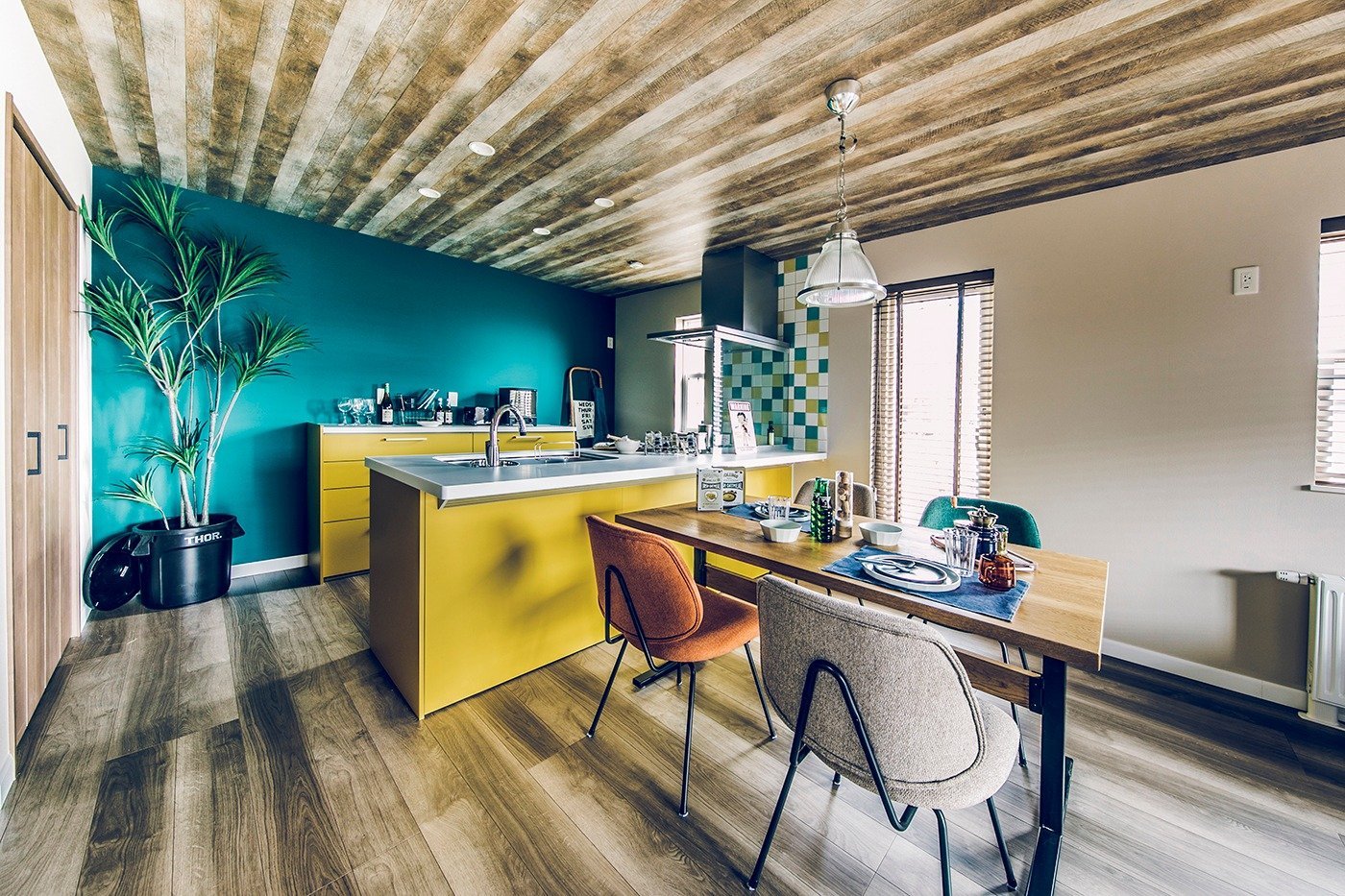 - マリンテイストにイエローのキッチンと、クロス使いのアクセントで自分らしい部屋に