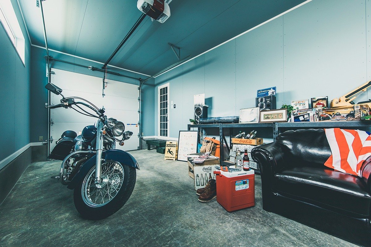 - 愛車を入れるのはもちろん、ソファを置いて趣味部屋としても使えるガレージ。
