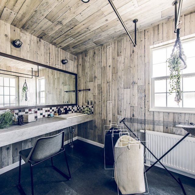 リビングからガレージを眺めることができるご主人のこだわりの窓。 洗面所から繋がるバルコニーは、お風呂上がりの外気浴も楽しめます。 キッチン収納や効率的な家事動線など、奥様の注目ポイントも満載。 無垢の床材や木目クロスなど、木のぬくもりたっぷりのコーディネート。 愛車を入れるのはもちろん、ソファを置いて趣味部屋としても使えるガレージ。