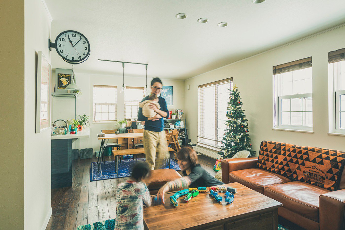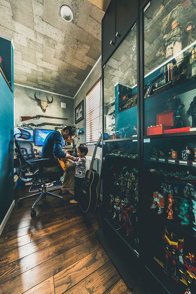 妻がふたり目を妊娠していたので、ほとんど僕のみでの打合せ。やりたいことがたくさんあって、僕の希望通りにさせてもらいました(笑)。男前インテリア、ヴィンテージというイメージで、頭に思い描いたものを伝えながら家づくりを進めていきました。とにかく今あるモノたちをキレイに収納すること、今まで集めたものをきちんとディスプレイすること。そして子どもたちがのびのび遊べること。