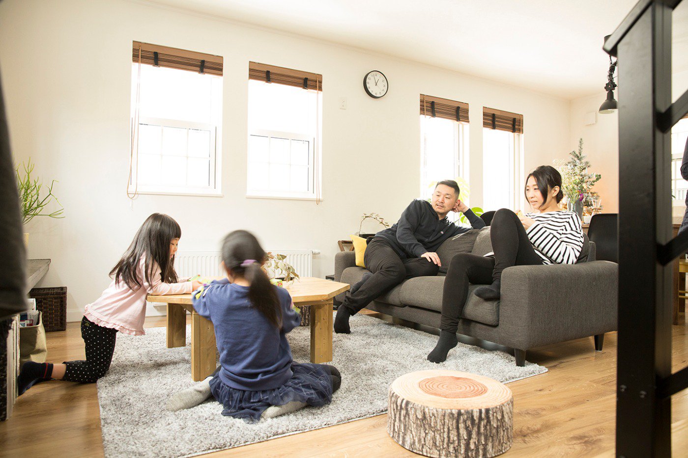 妻は2階のフリースペースで、イラストの仕事をしています。吹き抜けだから、子供の声がどこでも聞こえて、安心して仕事ができるみたいですね。子供たちも、自分の部屋ができたので、姉妹仲良く遊んでいますよ。妻は、大好きな植物を思いっきり飾ることができて嬉しいって言ってます。今まではスペースがなくて我慢していたみたいなので…