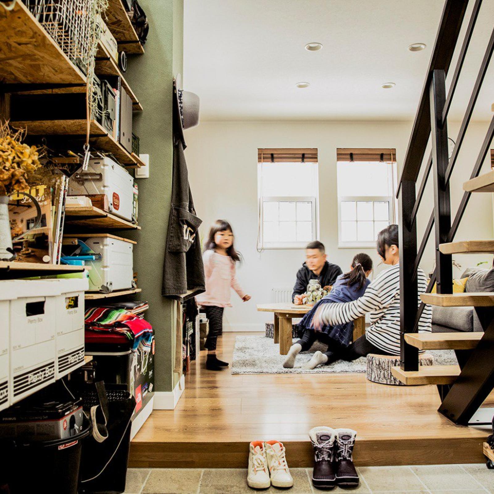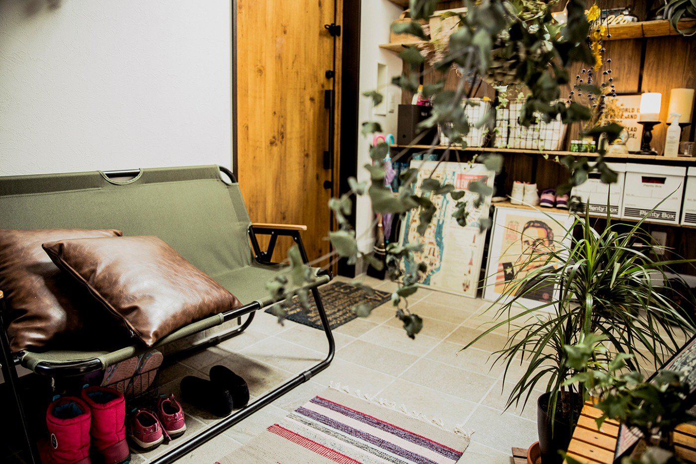 趣味のアウトドアはこの土間のおかげでとってもラクになりました。土間にイスを置いてのんびりしたり、家族みんなでのびのび過ごしています。