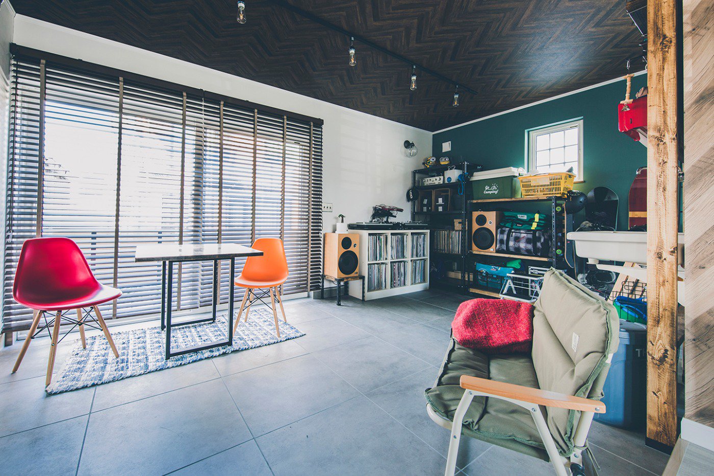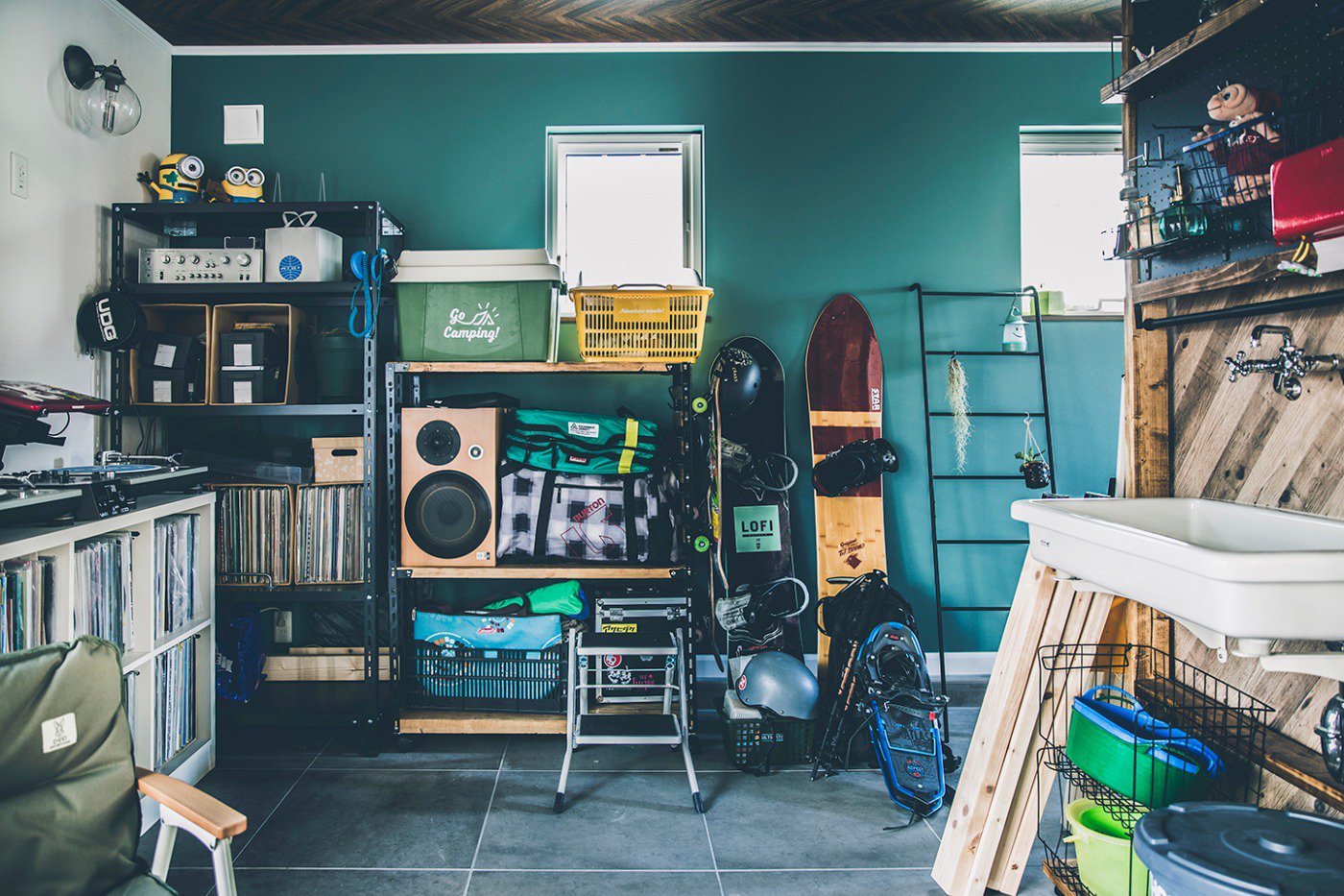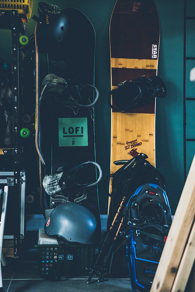 年齢的にそろそろ定住できるところをと考えていました。ふたり共通の趣味がスノーボードとキャンプ。音楽も好きです。札幌で2LDKのマンションに住んでいたんですけど、遊び道具が増えて置き場に困っていました。ボードのワックスを落とす場所もなくて。なので、妻のDJ機材も含めて、道具をひとまとめにしてかっこよくも置ける土間のある家が欲しかったんです。
