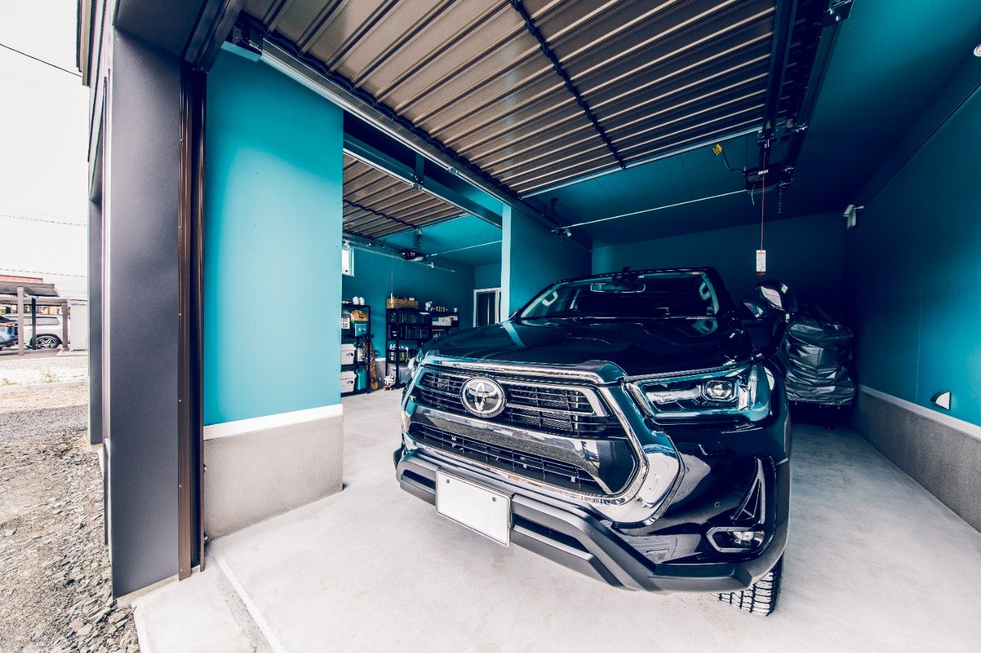 ダブルガレージの家。