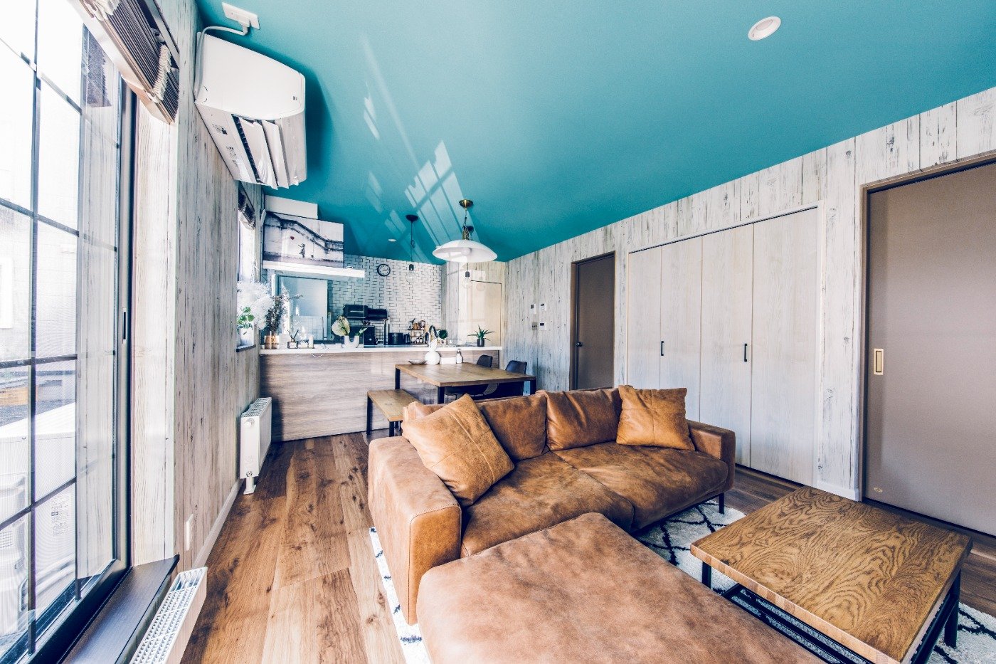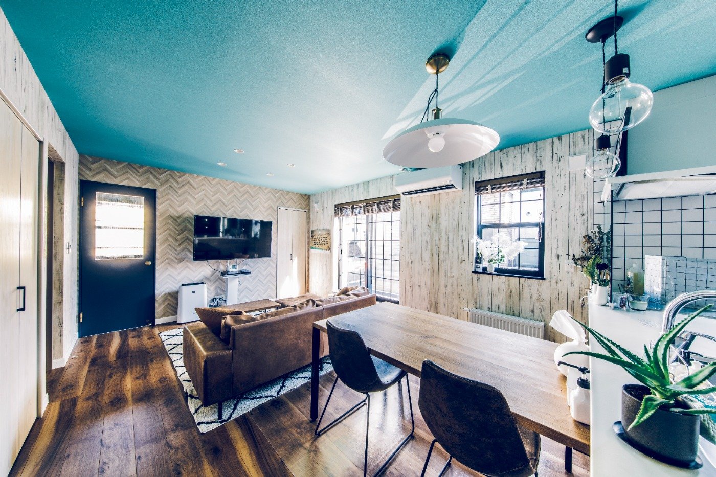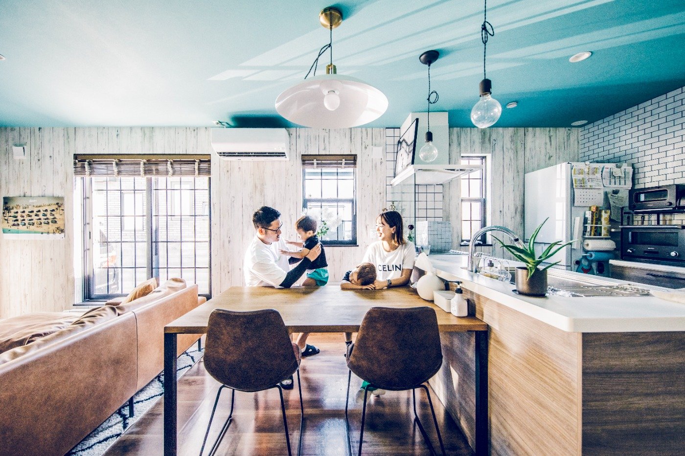インスタでアメカジ工務店の広告を見て、自分の好みドンピシャで。「明日ちょっと行ってみる?」みたいな軽いノリでモデルハウスの見学に行きました。30歳までには家を建てたいと漠然と思ってはいたけど、アメカジの家を見てからは、家づくりが一気に進みましたね。アメカジの家は、驚くくらいに求めていたそのもの。つまらない家に住むなら賃貸のままで良いと思っていたけど、ここは普通じゃない個性が溢れ出てて。「自分たちが家を建てるならこれだ!」っていうのが頭の中にはあったので、初めて見た時からしっくり来たんですね。クロスやドアのデザイン、家具や雑貨もカッコよく飾られてて、何よりガレージが最高だなと。車が好きだから、ガレージは絶対に欲しくて。アメカジのガレージは、ただ車を入れるだけの空間じゃないのもすべて含めて、「イカすな〜」と笑。妻がアメカジの家を見学した帰りに、「私たちもアメカジの家に住むんだね」と、自然にその言葉が出てたんですよね。他の会社を全く見ずに決めたから、友だちにはビックリされたけど、それほど運命を感じる出会いだったなと。でもやっぱりいちばんの決め手は、担当スタッフさんですね。レスポンスは早いし、不安なことは親身になって解消してくれて。とにかく神対応でしたよ!その方じゃなかったら、こんなにすぐには決めてなかったかな。