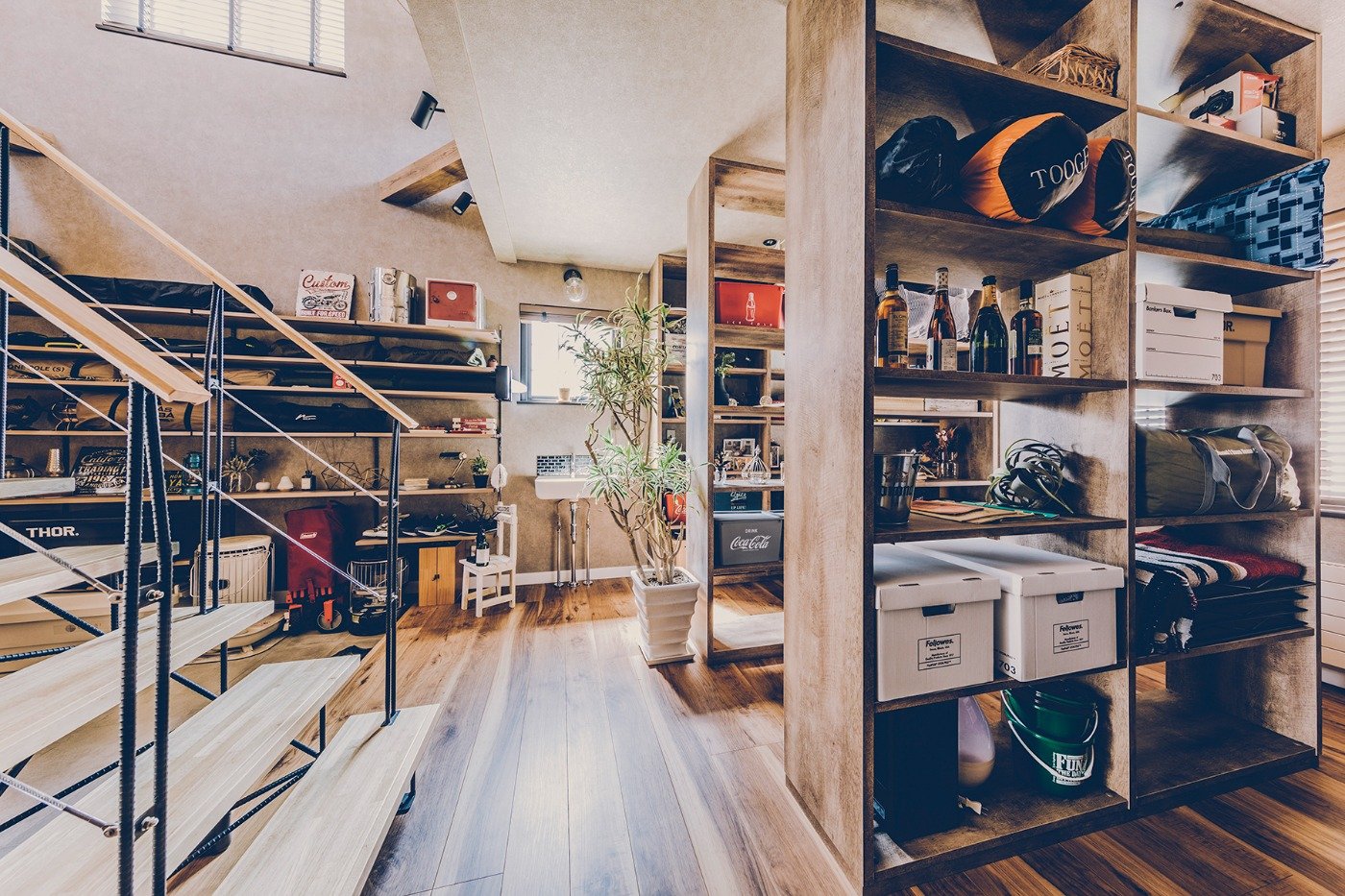 この家の特徴でもある土間とストレージスペースには、趣味のキャンプギアをディスプレイしながら収納しています。賃貸時代はキャンプ道具を仕舞うのにレンタルスペースを借りるほどでしたが、全て収めることができました笑。おかげでキャンプの準備や後片付けも楽になり、快適です。2階のワークスペースの照明や洗面化粧台のタイルなど、間取り以外の細かなところも全部気に入ってます。ここまで突き抜けて、個性的な家は他にはないと思います。デザインだけでなく、暖かさや、オーナーを大事にしている社風にも大満足。オーナーイベントや、インテリアショップで利用できる特典なども嬉しいです。