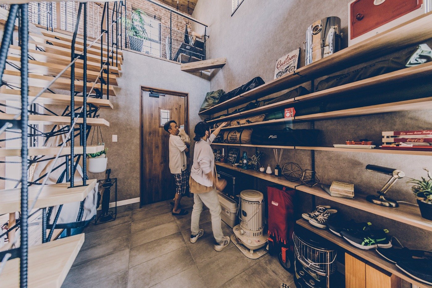 趣味を快適に楽しめる、広い土間・道具収納庫のあるモデルハウスを購入。