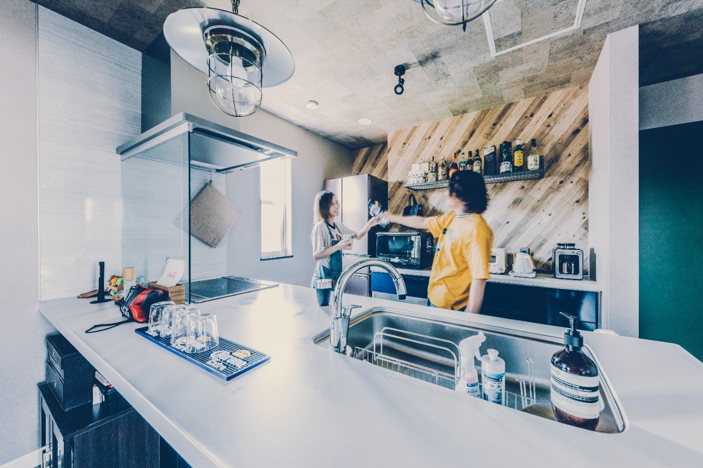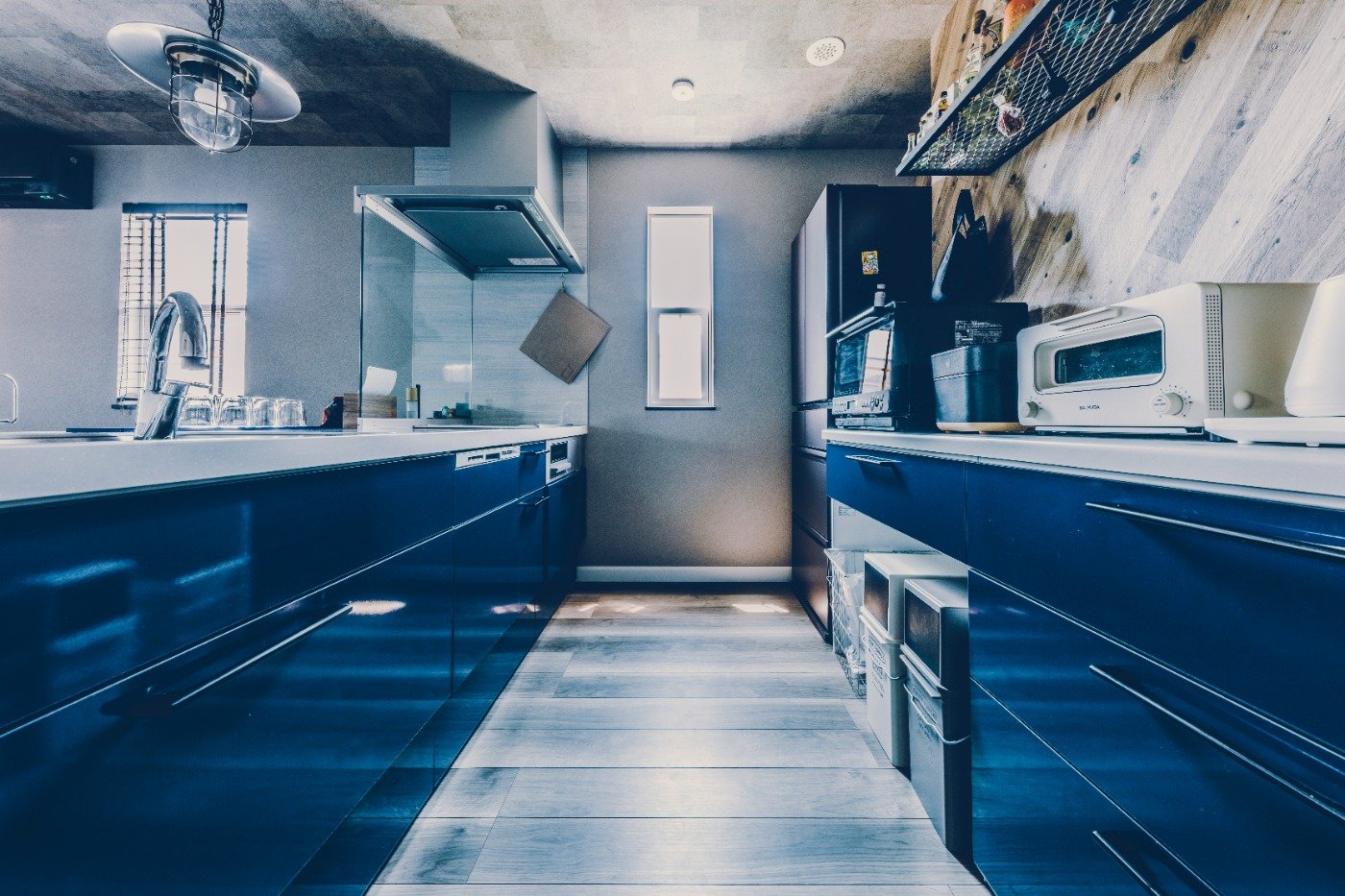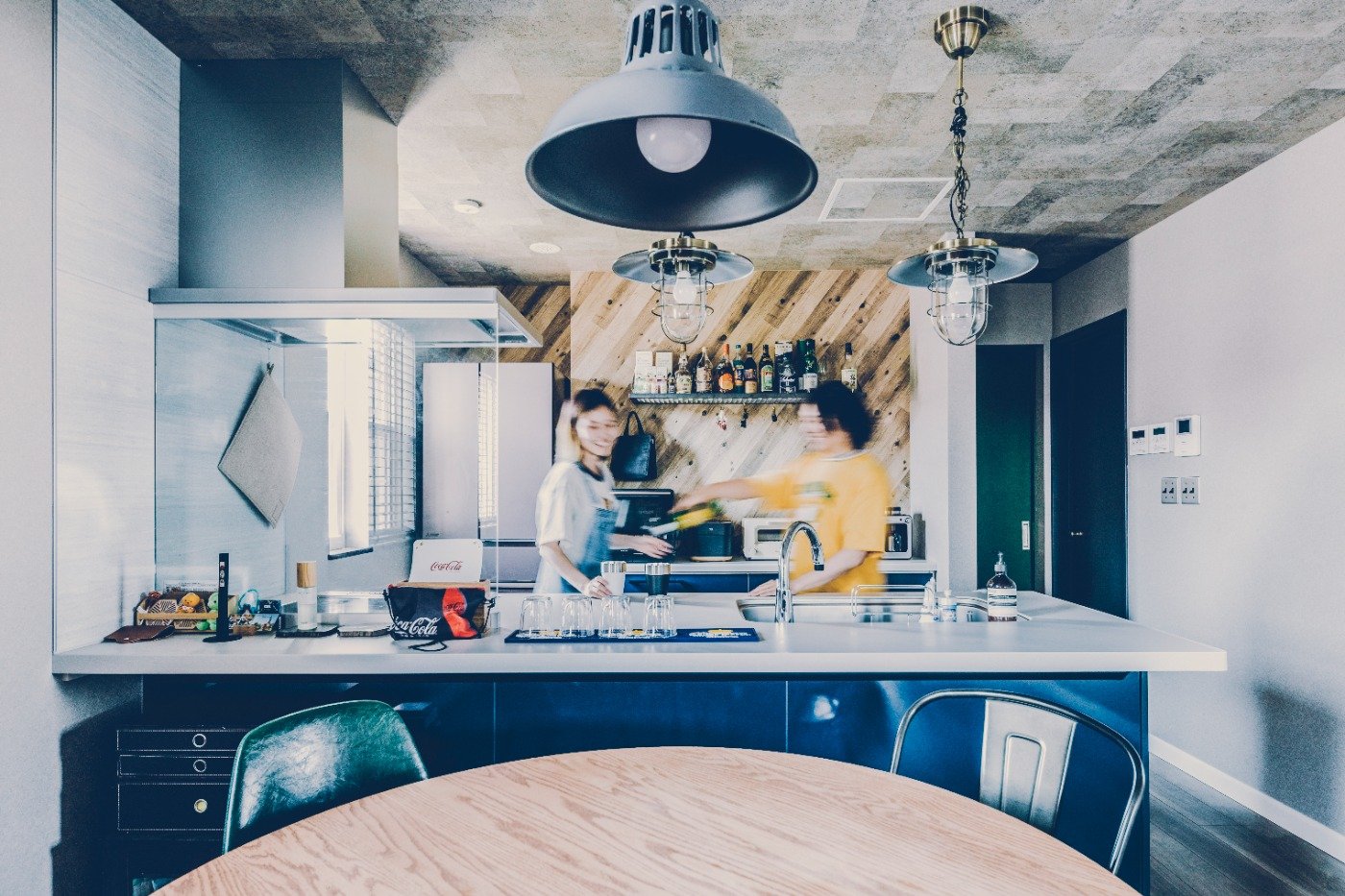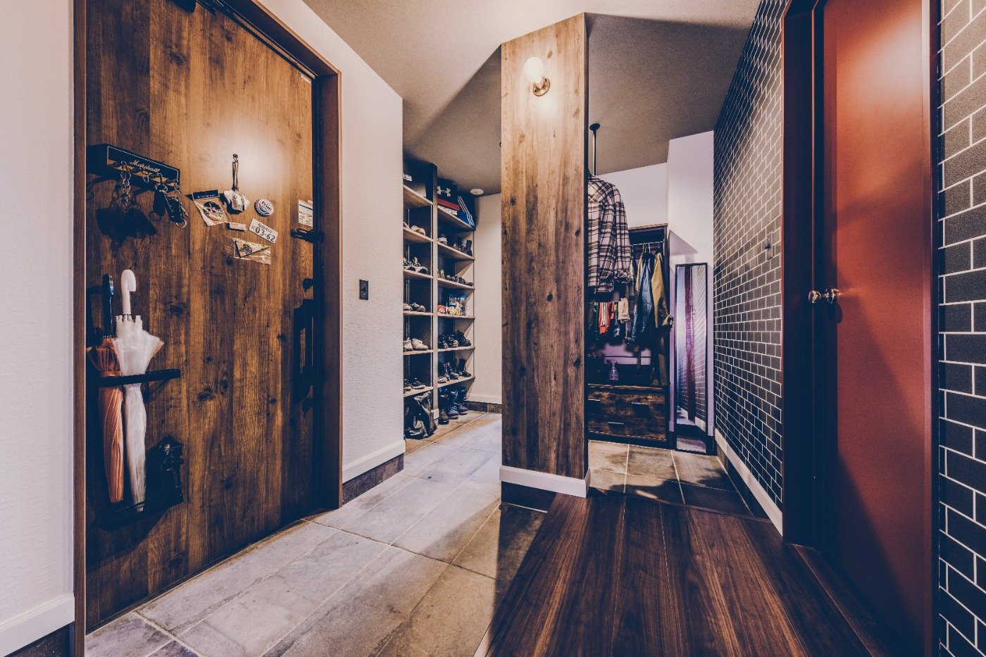うっすらとした記憶ではあったけど、CMでもアメカジの家を見たこともあったんです。カラフルなガレージは、車を入れるだけではなく、好きなコトをして遊べる空間という印象。実際にアメカジの家を見て、カッコいい〜!!と思いましたよ。ガレージはもちろん、他には無いオシャレな内装も自分たち好み。クロスにも遊びがあって、いいですよね。最終的に決めたのは、基本のパッケージの中にガレージプランがあったことです。他社でガレージを要望すると、コストも高いし、あまり実績もなかったようなので、その点アメカジ工務店は安心感がありました。タイミング良く、予算内で広い土地が見つかったのも大きいですね。この土地のおかげで、人をたくさん招いてBBQができる広い庭スペースを確保し、間取りの自由度も上がりました。