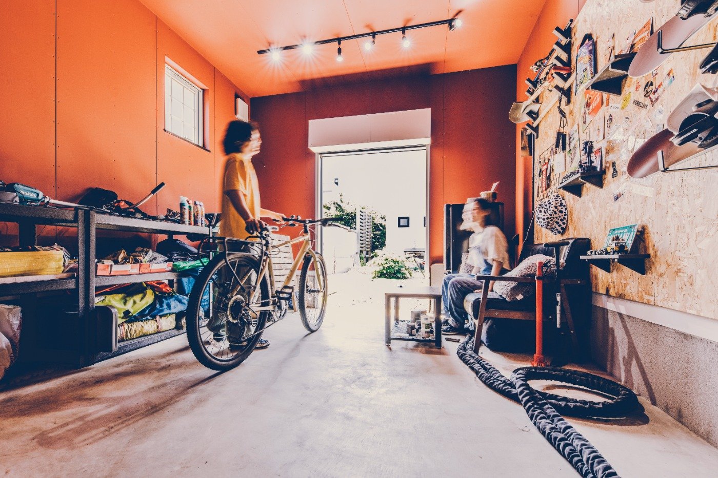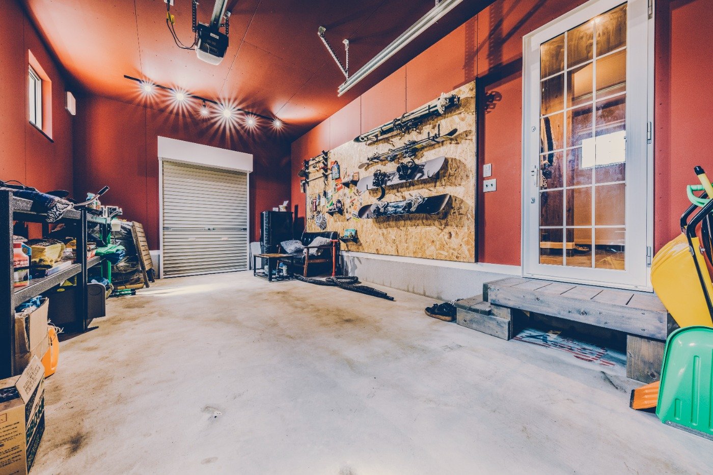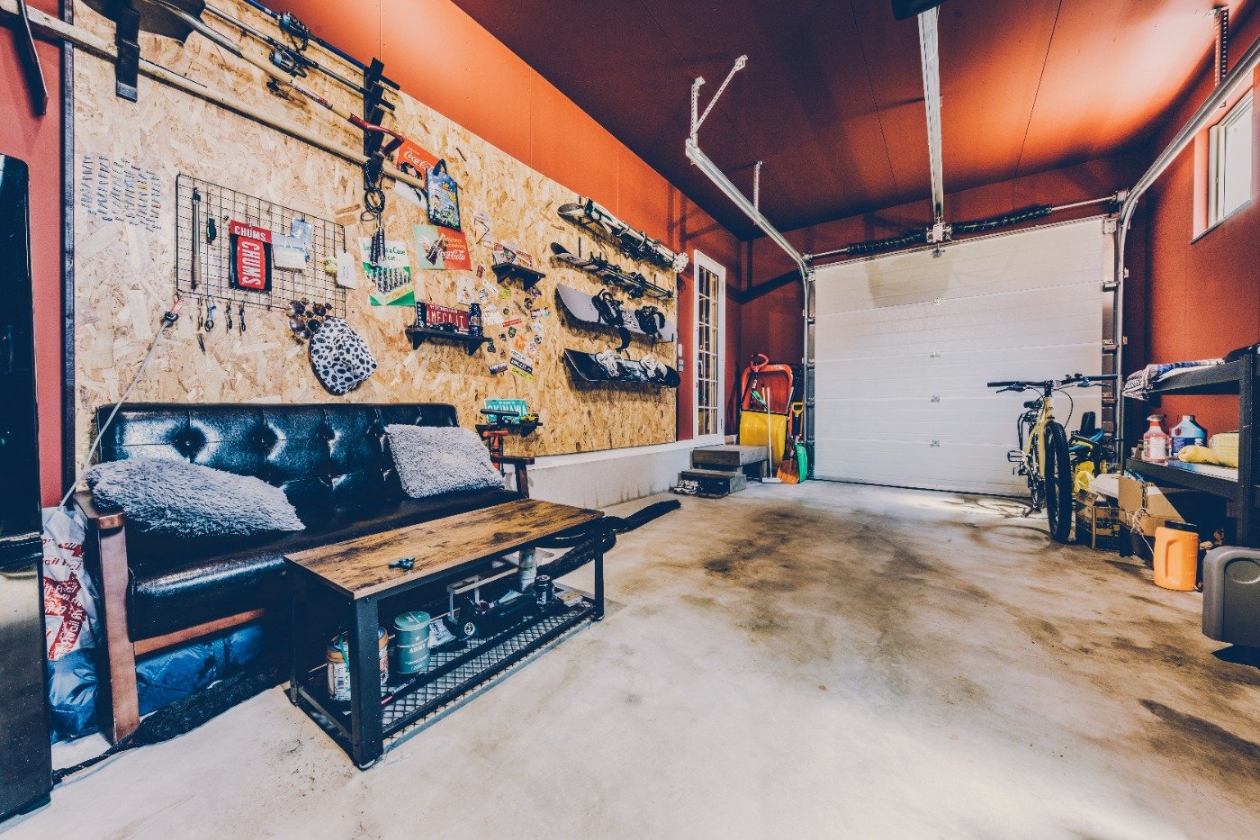 おうちのこだわりは、やっぱりガレージですね。ソファとテーブルを置いて、妻や友人とくつろいだり、スノーボードや自転車の手入れをしたり。時にはガレージで、筋トレもしますよ笑。スノーボードウェアも掛けられる大きな土間や、倉庫をイメージしたリビングのクロスも気に入っています。住み始めて約1年半が経ちますが、めちゃくちゃ最高です〜!思い返すと、前の賃貸は、このガレージくらい狭かったかも笑。狭い家に何人も遊びに来てくれていたけど、今は家も広くなって、念願だったガレージも造れて。友人もお互いの家族も、気軽に集える環境になりました。友人に「雨の時はガレージでBBQしないの?」と聞かれるんですが、ホットプレートでギリギリセーフ笑。大切な場所だからこそ、綺麗な状態を維持し続けたいです。