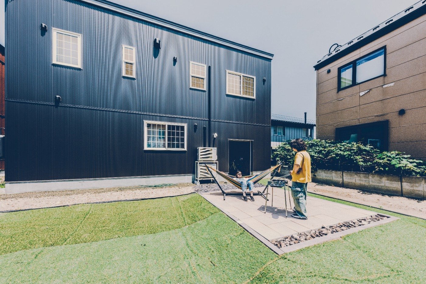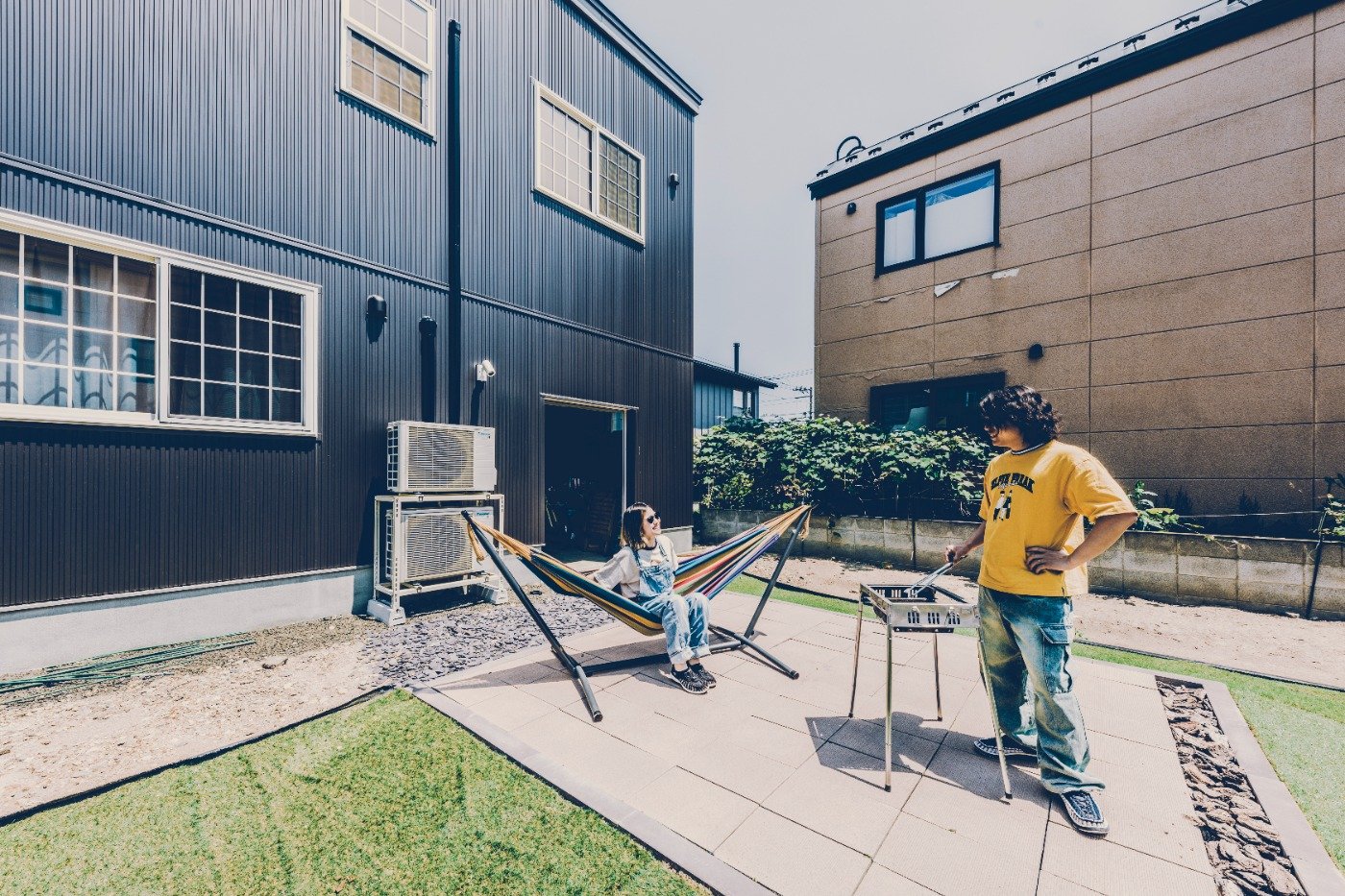前に住んでいたのは、僕が1人で住んでいた1LDKの賃貸マンション。ふたりで住むには手狭に感じて、広い賃貸に引っ越すか、家を建てようかと考え始めました。僕も妻も友人を招くことが多かったから、利便性ではマンションもいいけど、音の面では周りに迷惑がかかるかなと笑。最初は、総合展示場に行きました。一軒家を建てるなら、趣味を愉しむために、絶対ガレージが欲しいと思っていたんですが、他社はガレージを付けるとオプションで、予算オーバー。通勤面で交通の便は妥協できないし、広い庭が造れる土地が良かったんです。自分たちでも色々と調べていた矢先、Instagramの広告で目に留まったのがアメカジ工務店でした。